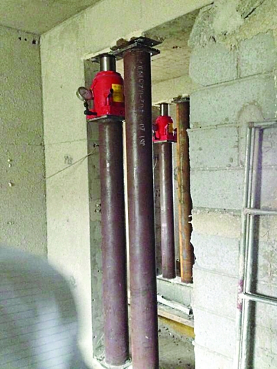 近日,常州新城香溢瀾橋的業(yè)主小徐在一次探房屋建造情況時有了一個驚人的發(fā)現(xiàn),房子的大梁竟然用千斤頂撐著,工人正在旁邊用混凝土對房屋重新進行加固施工,此時有的承重墻內(nèi)的鋼筋已經(jīng)裸露在外,有的地方還有大量鋼管,另外,部分墻面的水泥也已經(jīng)被敲掉了,墻面破爛不堪。那么千斤頂為何會被用于撐房呢?下面我們一起來看一下。