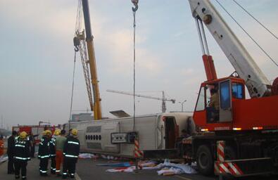 通過圖片我們可以看到,指揮員迅速組織兩組人員開展施救,一組人員利用雙利油壓千斤頂將客車頂起對被困人員進行搜救,另一組人員利用液壓破拆工具對變形的槽罐車車頭進行破拆,救援被困的兩名駕駛員,同時針對槽罐車泄露口進行堵漏并對泄露的液體進行稀釋。